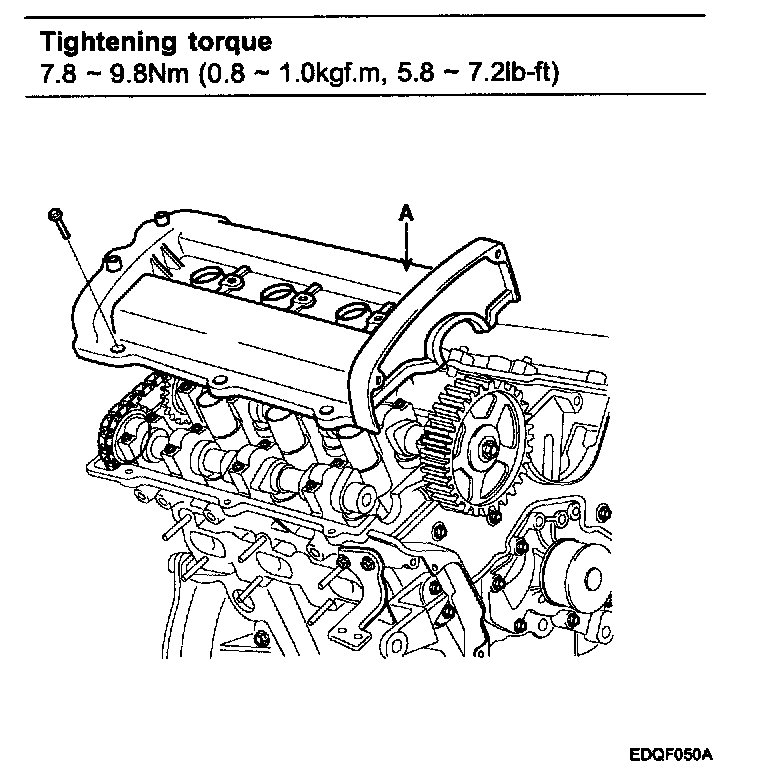 Camshaft sprocket bolt 88.3 - 107.9Nm (9.0 - 11.014gf.m, 65.1 - 79.6lb-ft)