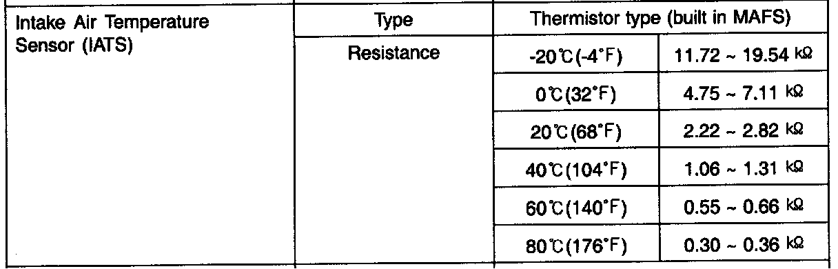 Intake Air Temperature Sensor (IATS) - Specifications: