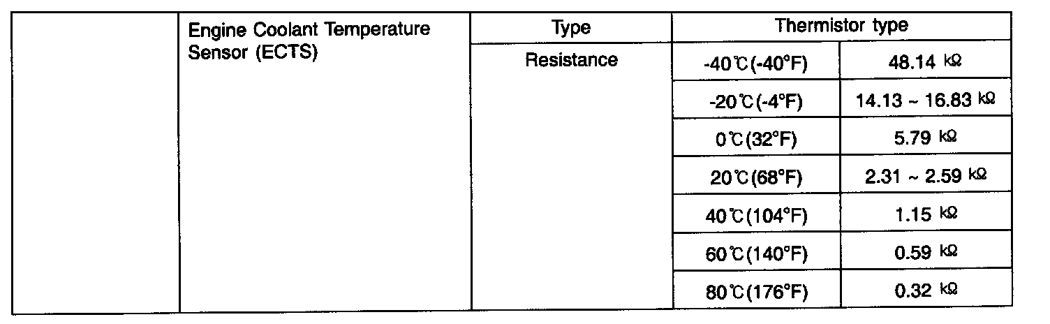 Engine Coolent Temperature Sensor (ECTS) - Specification: