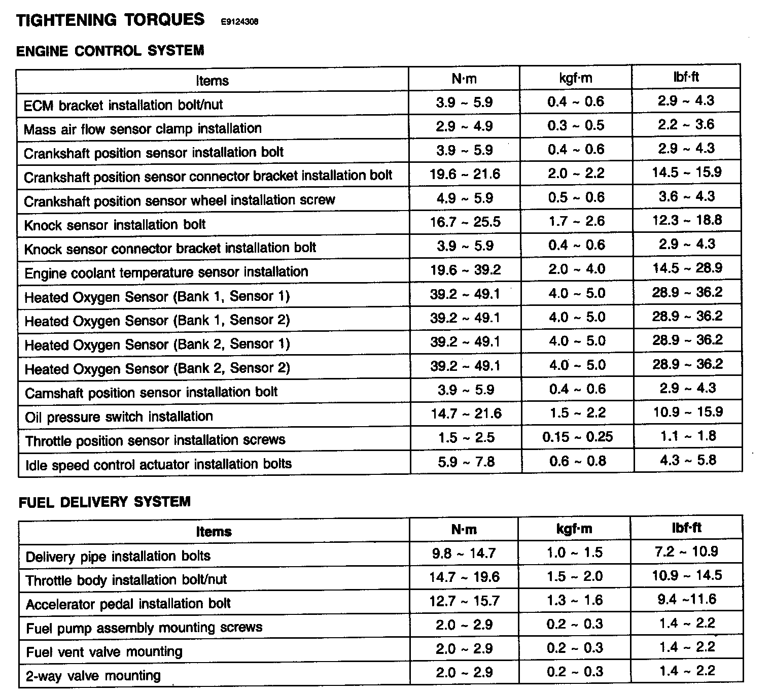 Tightening Torques: