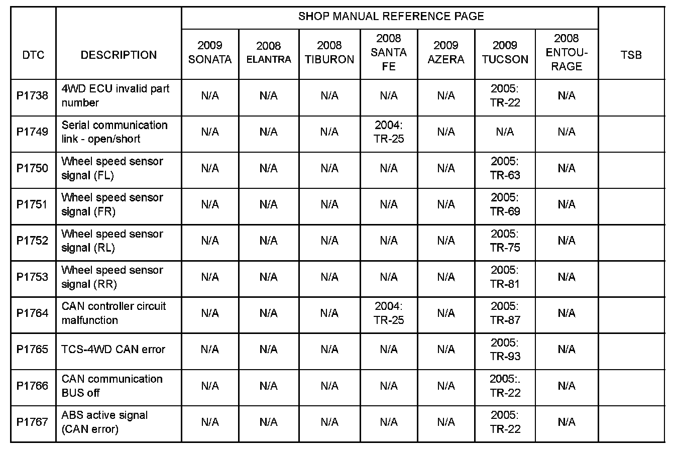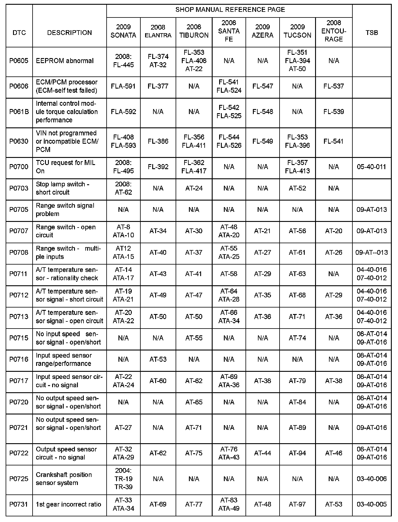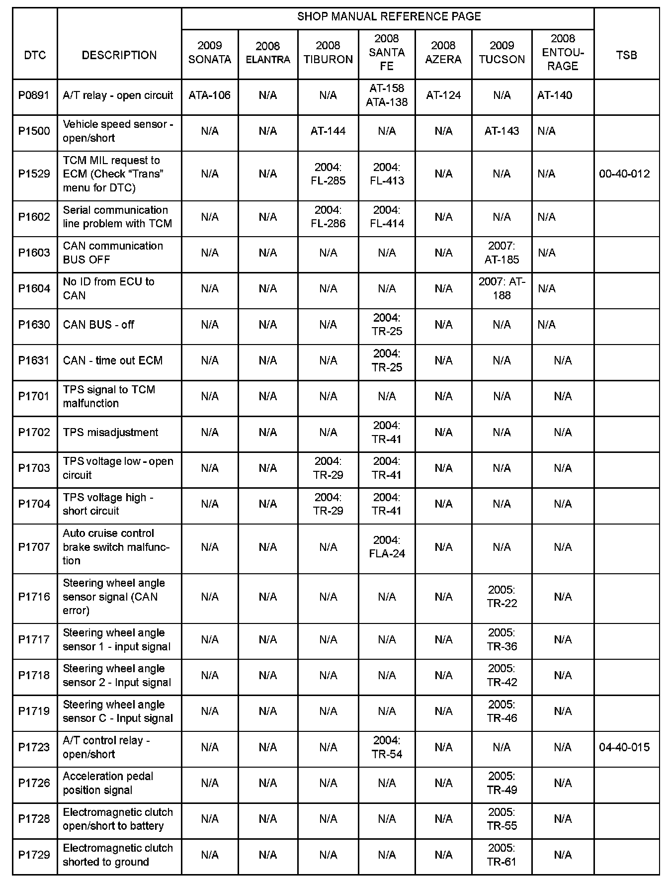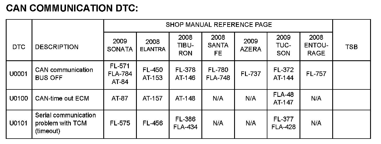 DTC information can be found in the shop manuals and TSBs shown above.