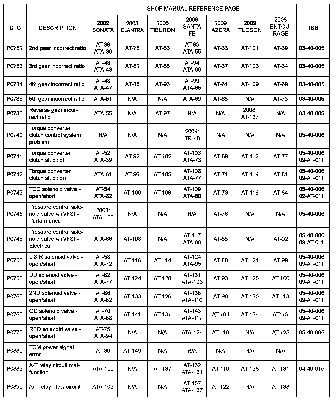 This TSB supersedes TSB 08-AT-001 to provide 2009 model information.