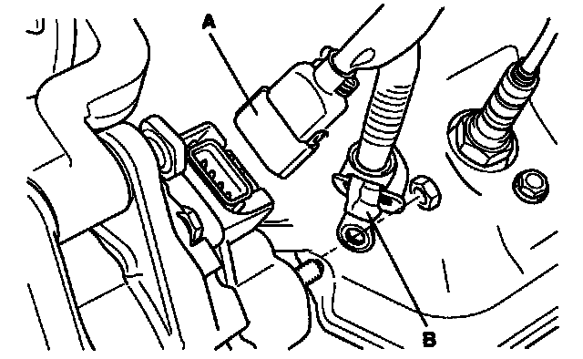3. Disconnect the connector (A) and "B" terminal cable (B).