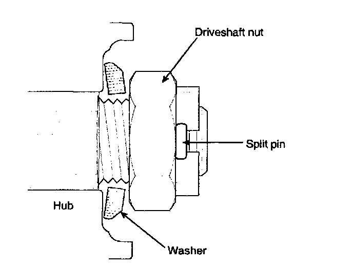 Install the washer behind the driveshaft nut with the convex side outward as shown in the illustration.