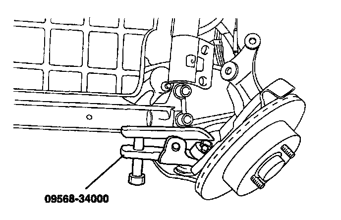 8. Disconnect the lower arm ball joint from the knuckle by using the special tool (09568-34000).