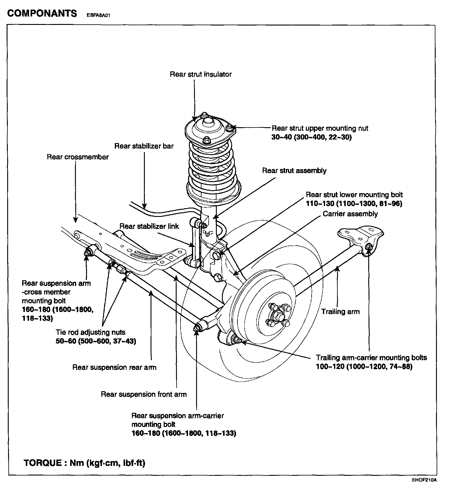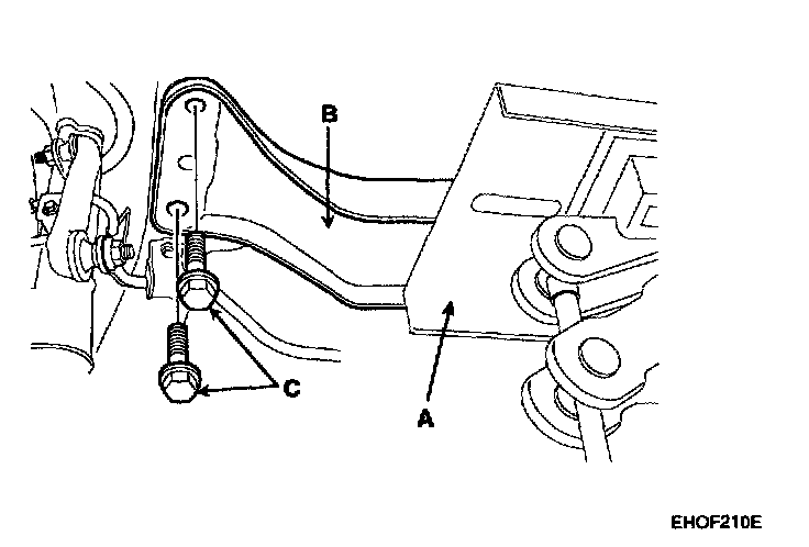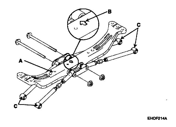 Rear suspension arm (C) -to-rear carrier bolts should be temporarily tightened, and then fully tightened with the vehicle on the ground in unloaded condition.