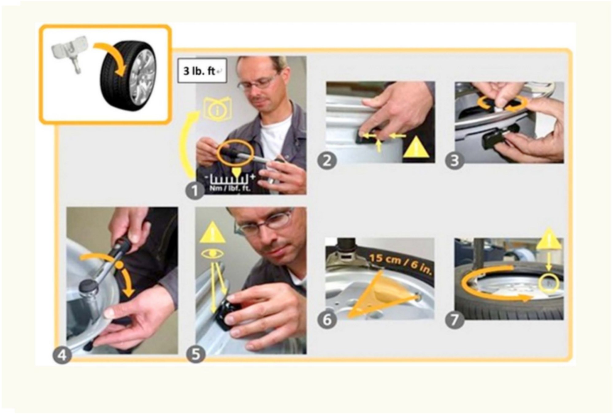 ^ After installing the TPMS sensor, check if it is attached to the rim firmly.