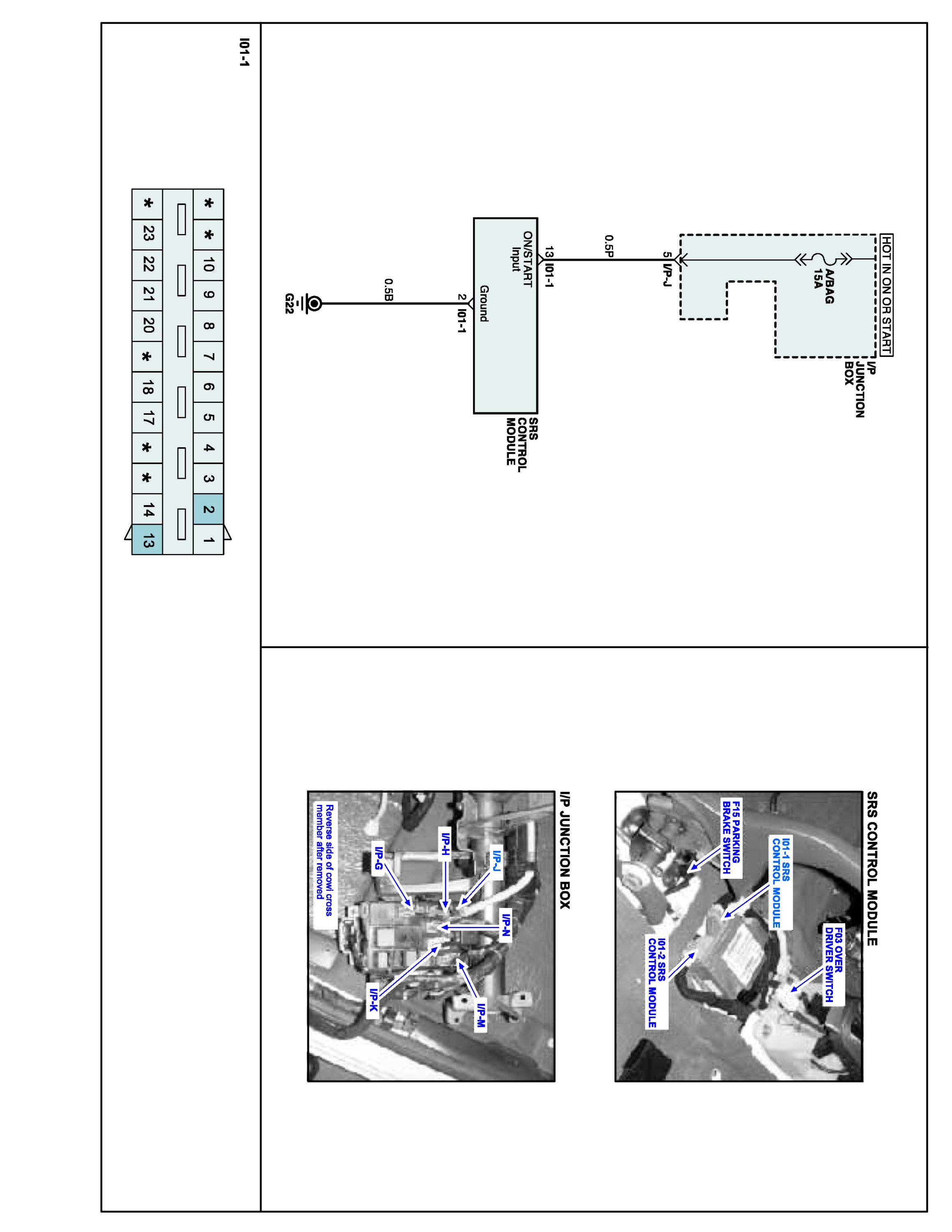 SRSCM (Supplemental Restraints System Control Module) checks input voltage when "IG ON" to make air bag system work properly.