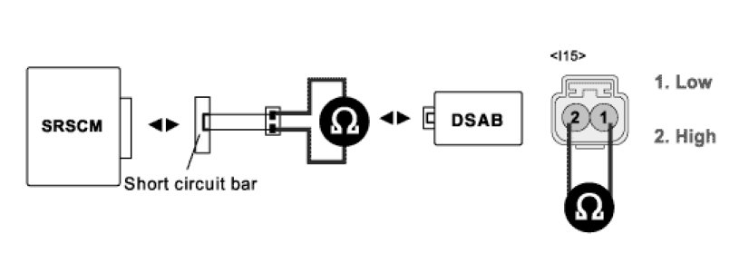 4. Measure resistance between terminal "2" and "1" of the DSAB harness connector.
