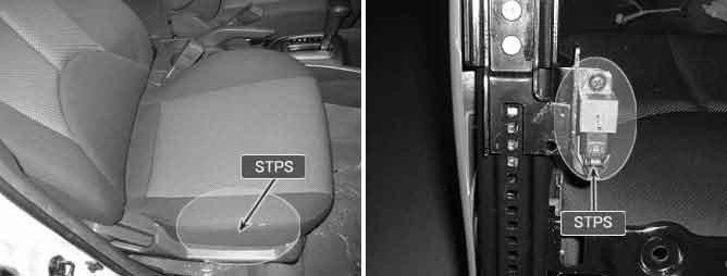 STPS located underneath passenger seat detects horizontal position of passenger seat and delivers it to SRSCM. Signal of STPS is the one of major parameters that determine the way dual output type airbag deploys.