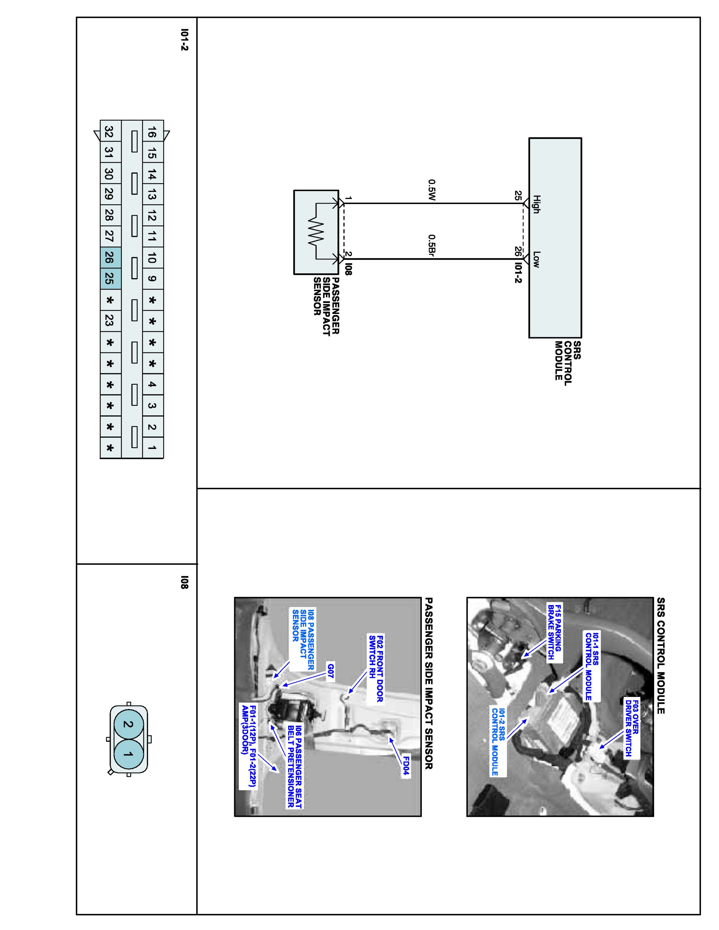 Side Impact Sensor (SIS) is located in both side of center pillar detects broad collision. When SIS delivers collision signal to SRSCM, SRSCM checks if safing sensor located in SRSCM detects collusion. and if both SIS and safing sensor detects collision simultaneously, SRSCM operates side air bag.
