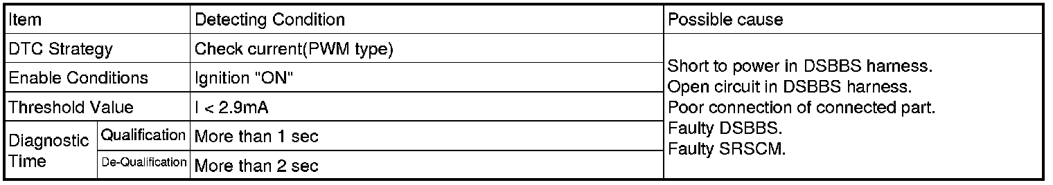 The SRSCM sets DTC B1511 if there is a open circuit or short to power in DSBBS harness.