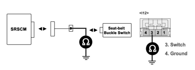 4. Measure resistance between terminal "3" of the Seat-belt Buckle Switch harness connector and chassis ground.