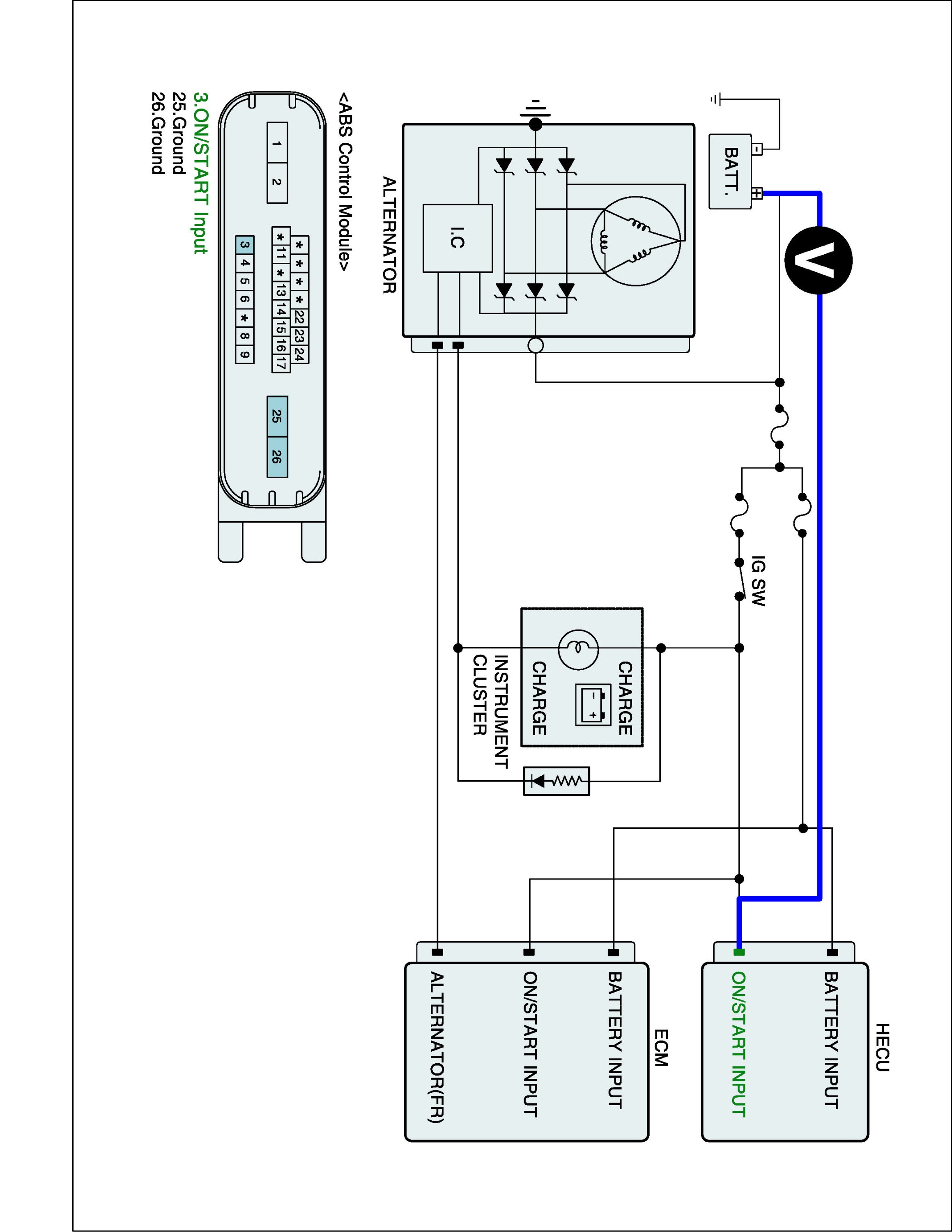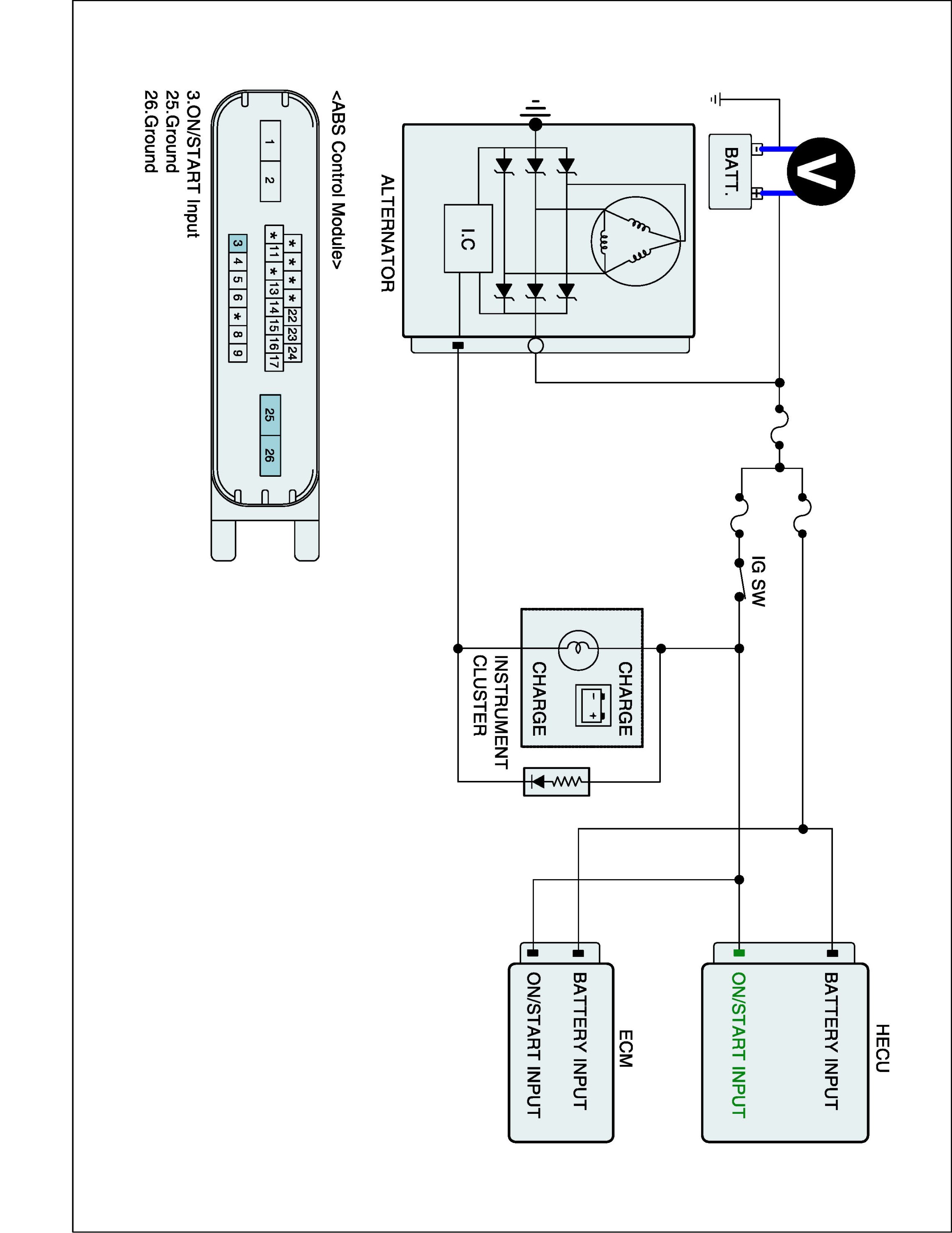 2. Measure voltage between the battery terminal (+) and power terminal of the HECU harness connector.