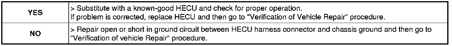 3. Measure resistance between ground terminal of the HECU harness connector and chassis ground.