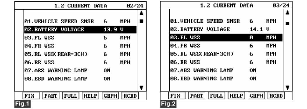 4. Monitor the "FL WSS" parameter on the Scantool.