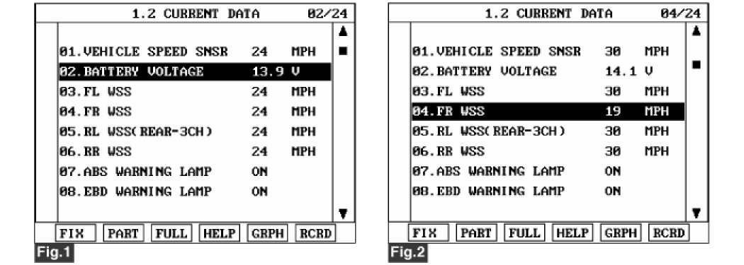 4. Monitor the "FR WSS" parameter on the Scantool.
