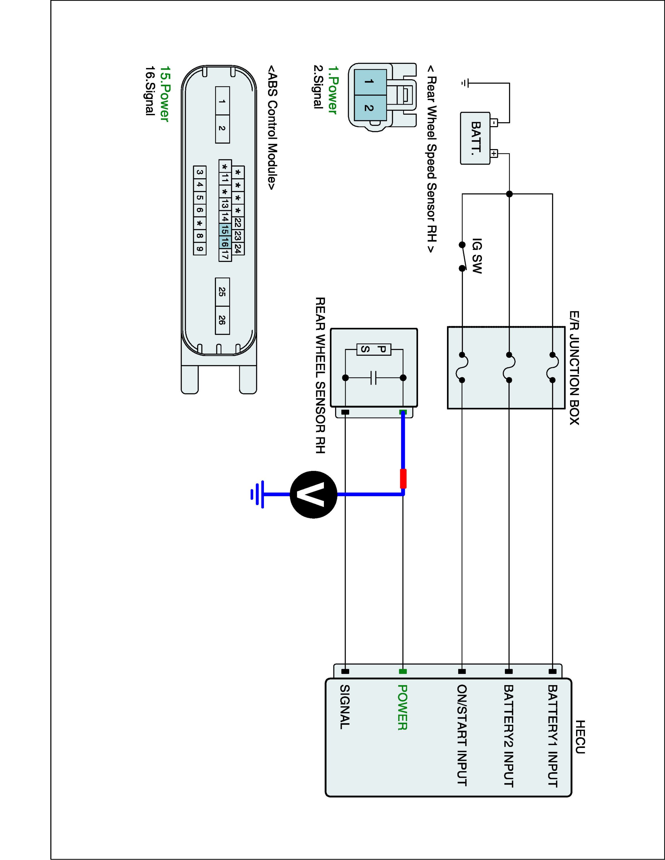 2. Measure voltage between power terminal of the wheel speed sensor harness connector and chassis ground.