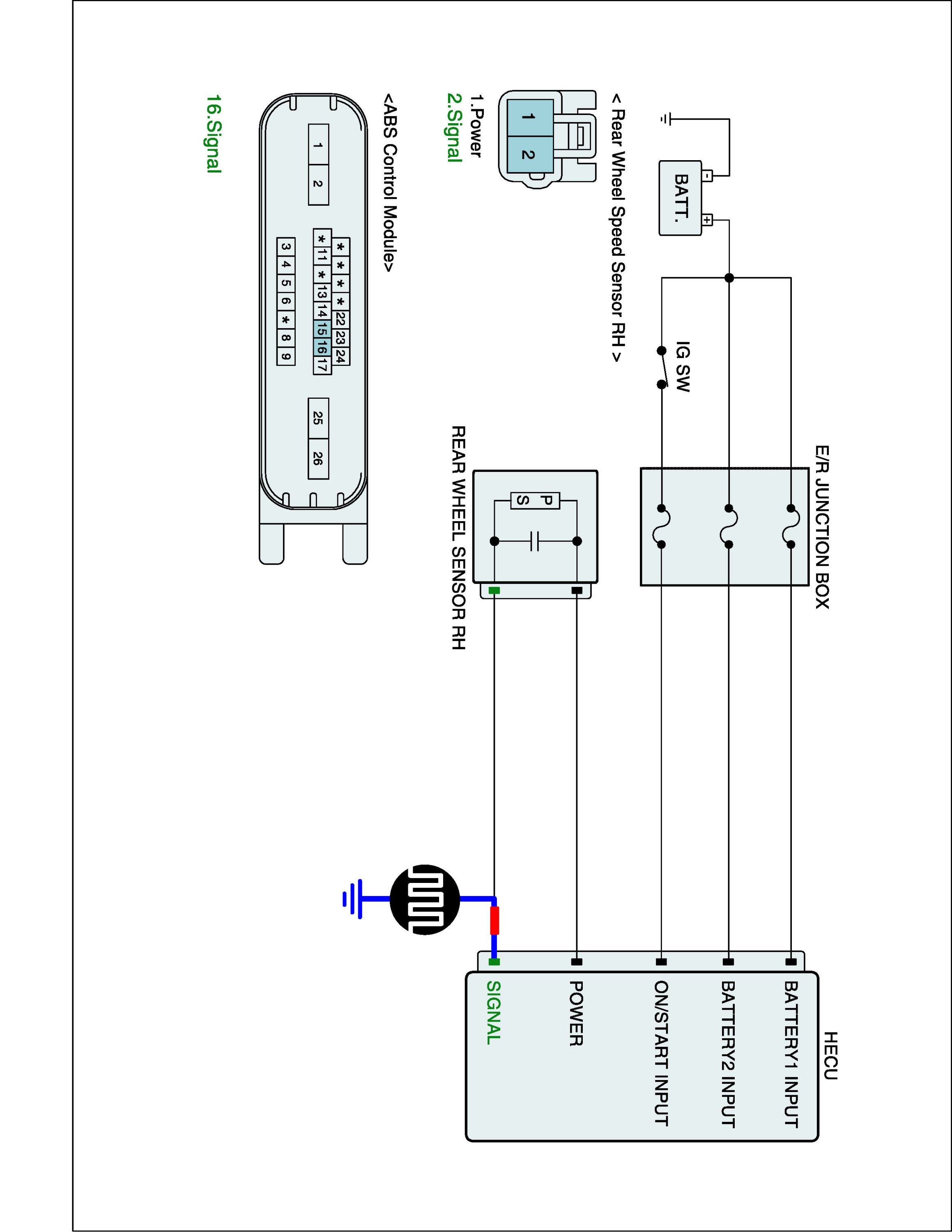 4. Measure waveform between wheel speed sensor signal terminal of the HECU harness connector and chassis ground with oscilloscope.