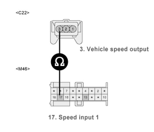 3. Measure resistance between "17" terminal of the TPMS harness connector and "3" terminal of the vehicle speed sensor harness connector.