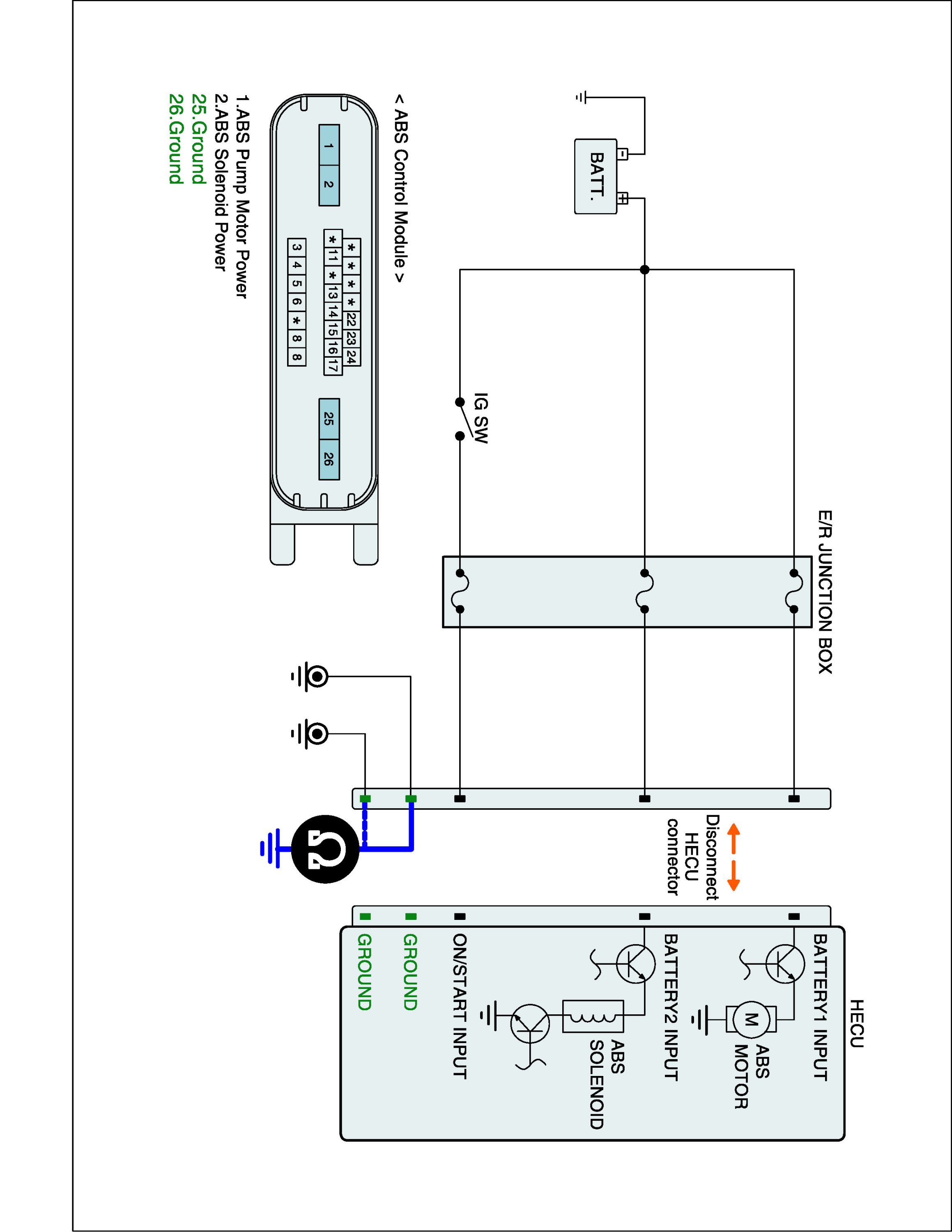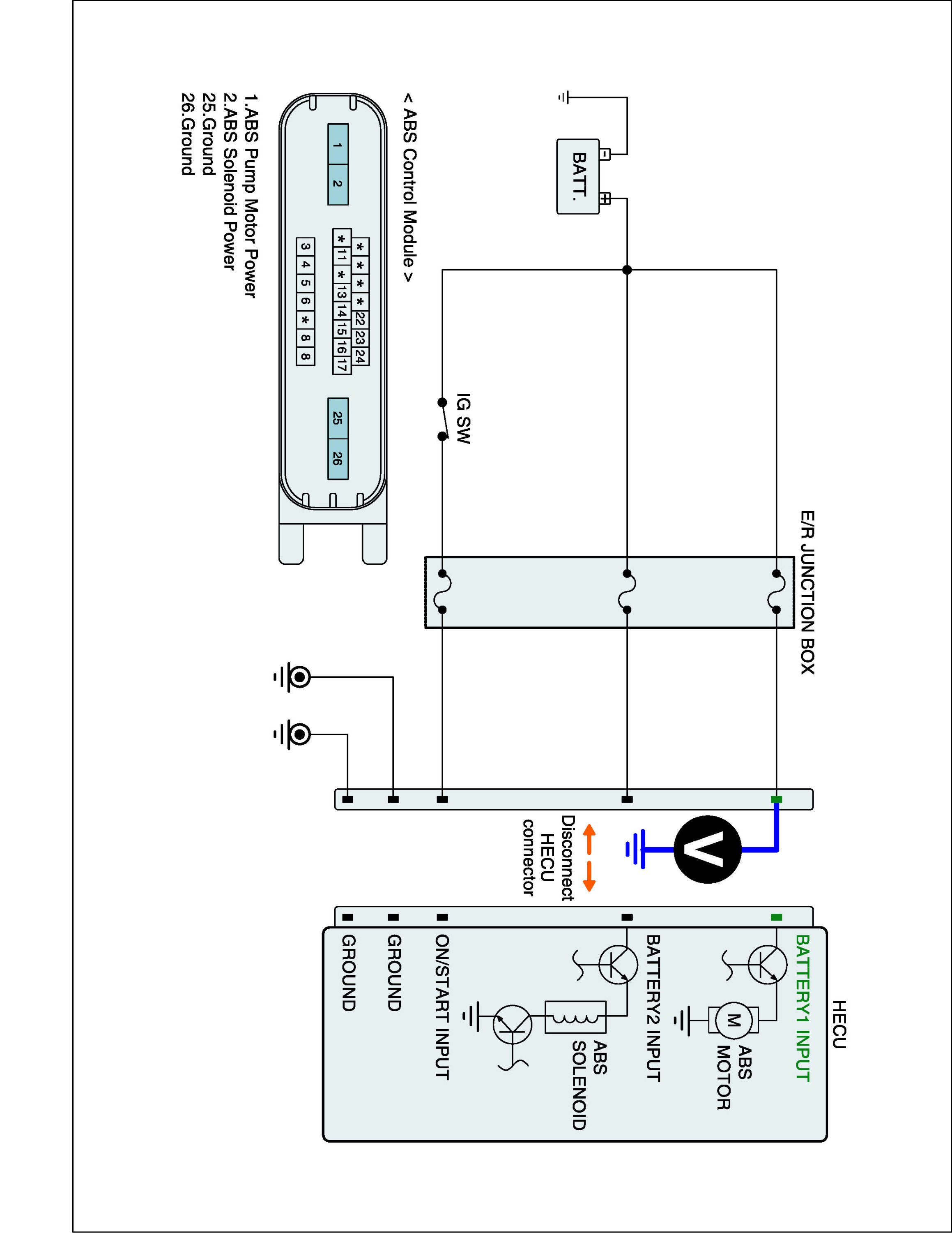 4. Measure voltage between power (ABS1) terminal of the HECU harness connector and chassis ground.