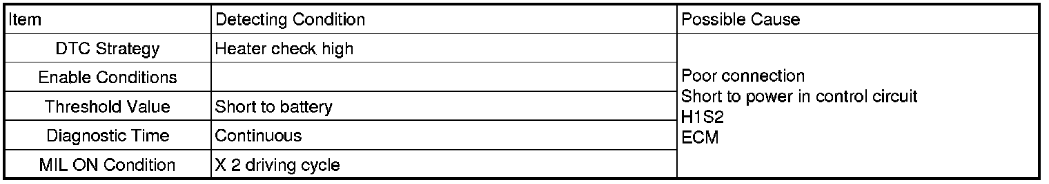 When ECM detects short to power in the heater control circuit, ECM sets DTC P0038.