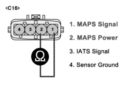 3. Measure resistance between terminal 4 of MAPS harness connector and chassis ground.