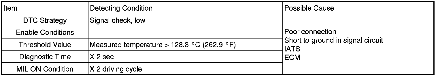 If measured temperature is higher than the maximum threshold value during 2 sec, ECM sets DTC P0112.