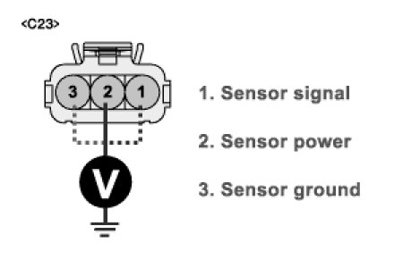 4. Measure the voltage between terminal 1, 2, 3 of TPS harness connector and chassis ground.