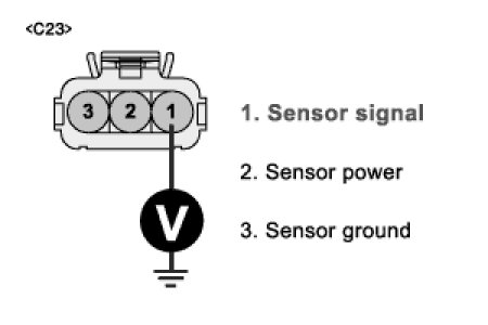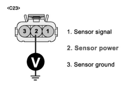 4. Measure the voltage between terminal 2 of TPS harness connector and chassis ground.