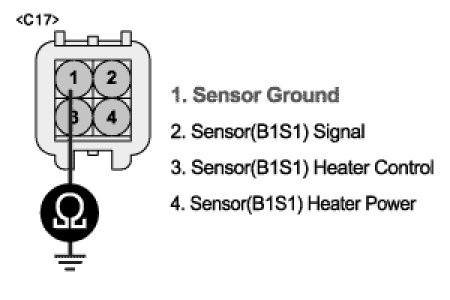 3. Measure resistance between terminal 1 of HO2S (B1/S1) and chassis ground.