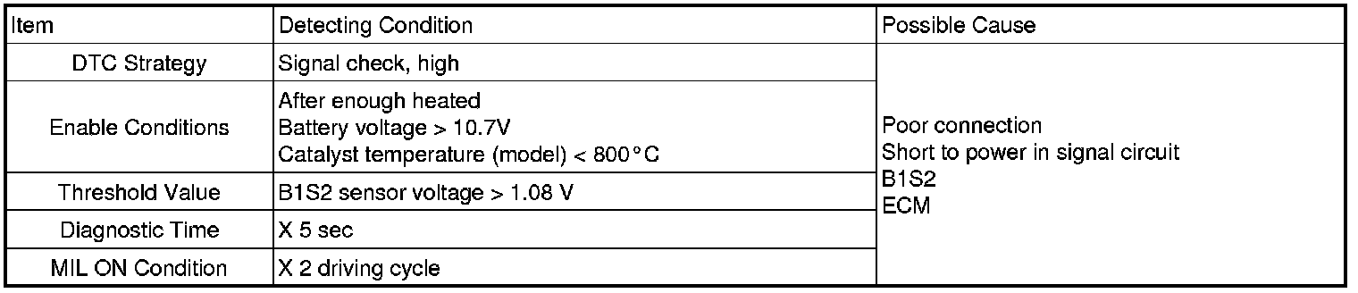 If the sensor output is over 1.08V under enable conditions, ECM sets DTC P0138.