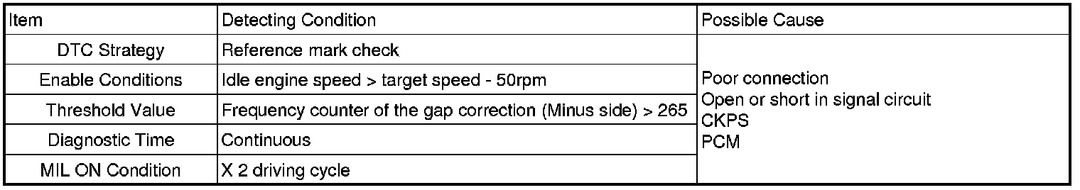 If frequency counter of the gap correction is retarded over 265, PCM sets DTC P0337.