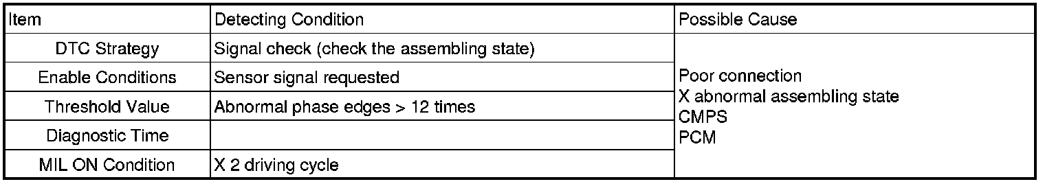 If signal input phase is abnormal over 12 times, PCM sets DTC P0340.