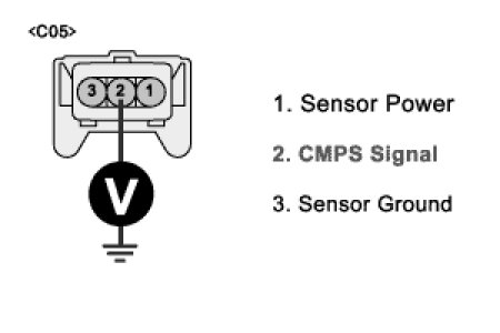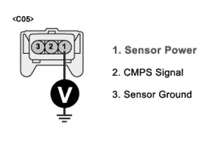 4. Measure the voltage between terminal 1 of CMPS harness connector and chassis ground.