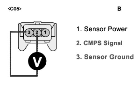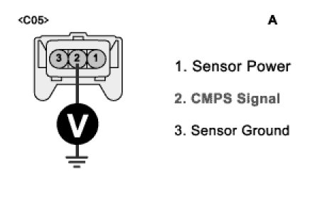 5. Measure the voltage between terminal 2 and 3 of CMPS harness connector. (B)