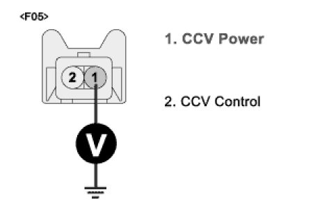 4. Measure the voltage between terminal 1 of CCV harness connector and chassis ground.