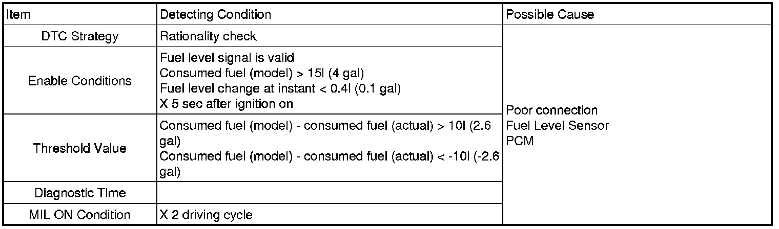 When the difference between actual consumed fuel and model consumed fuel is over the threshold value, PCM sets DTC P0461.