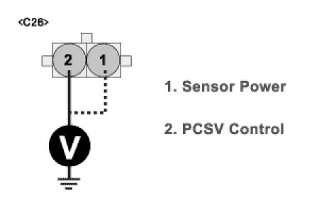 Measure the voltage between terminal 2 of PCSV harness connector and chassis ground.