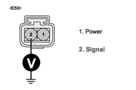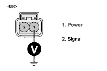 2. Measure voltage between terminal 1/E50 of the wheel speed sensor harness connector and chassis ground. (Connect wheel speed sensor connector)
