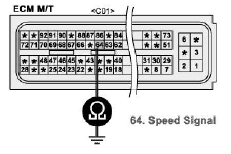 Measure resistance between terminal 64/C01 of ECM harness connector and chassis ground. [M/T]