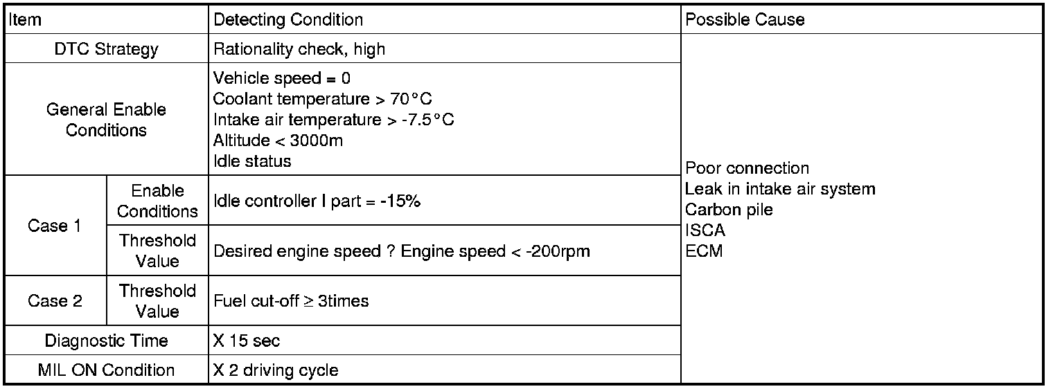 If actual engine speed is more than 200 RPM higher than desired engine speed, P0507 is set.