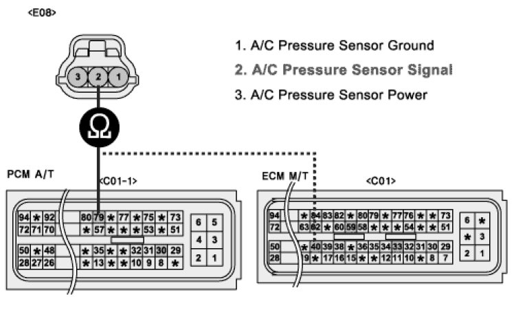(2) Disconnect A/C pressure sensor and PCM connector.