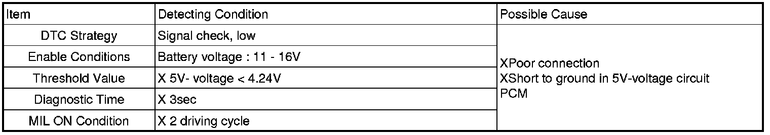 When PCM detects that the power for sensors (5V) is below 4.24V during 3 sec or more, PCM sets DTC P0642.