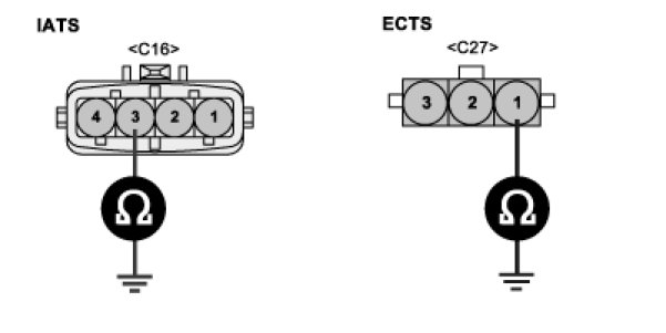 Measure the resistance between terminal 1 of ECTS harness connector and ground.