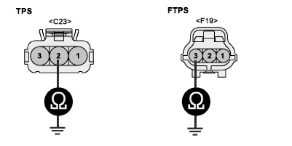 Measure the resistance between terminal 2 of TPS harness connector and ground.