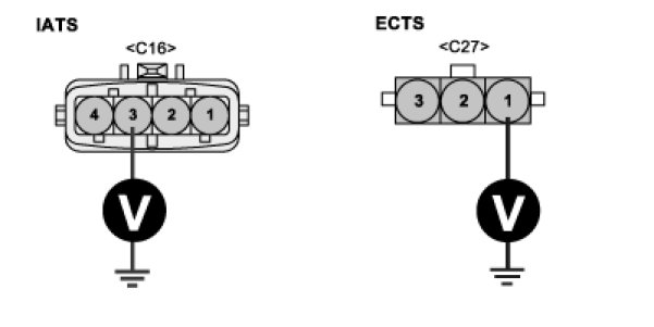 Measure the voltage between terminal 1 of ECTS harness connector and ground.