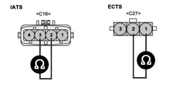Measure the resistance between terminal 1 and 2 of ECTS harness connector.