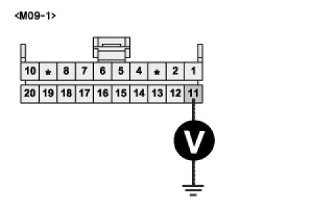 3. Measure the voltage between terminal 11 of Cluster harness connector and chassis ground.