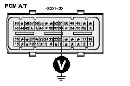 4. Measure the voltage between terminal 51/C01-2 of PCM harness connector and chassis ground. [A/T]